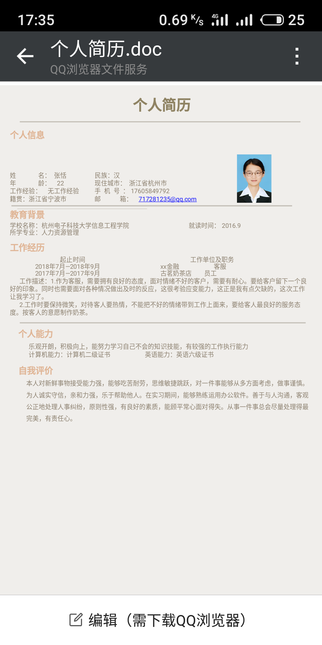 簡歷編號:56833